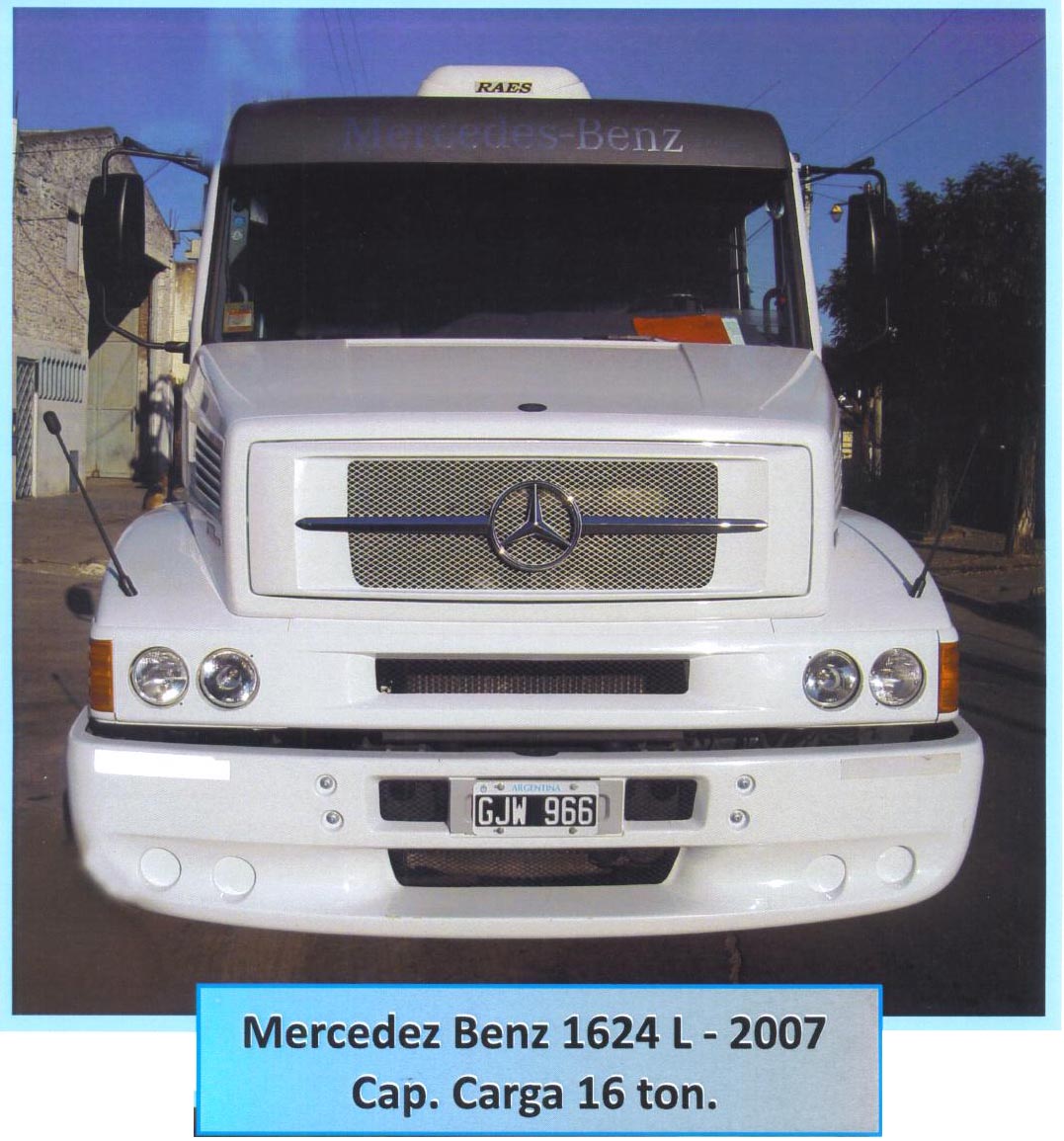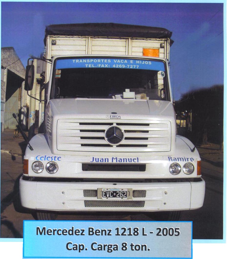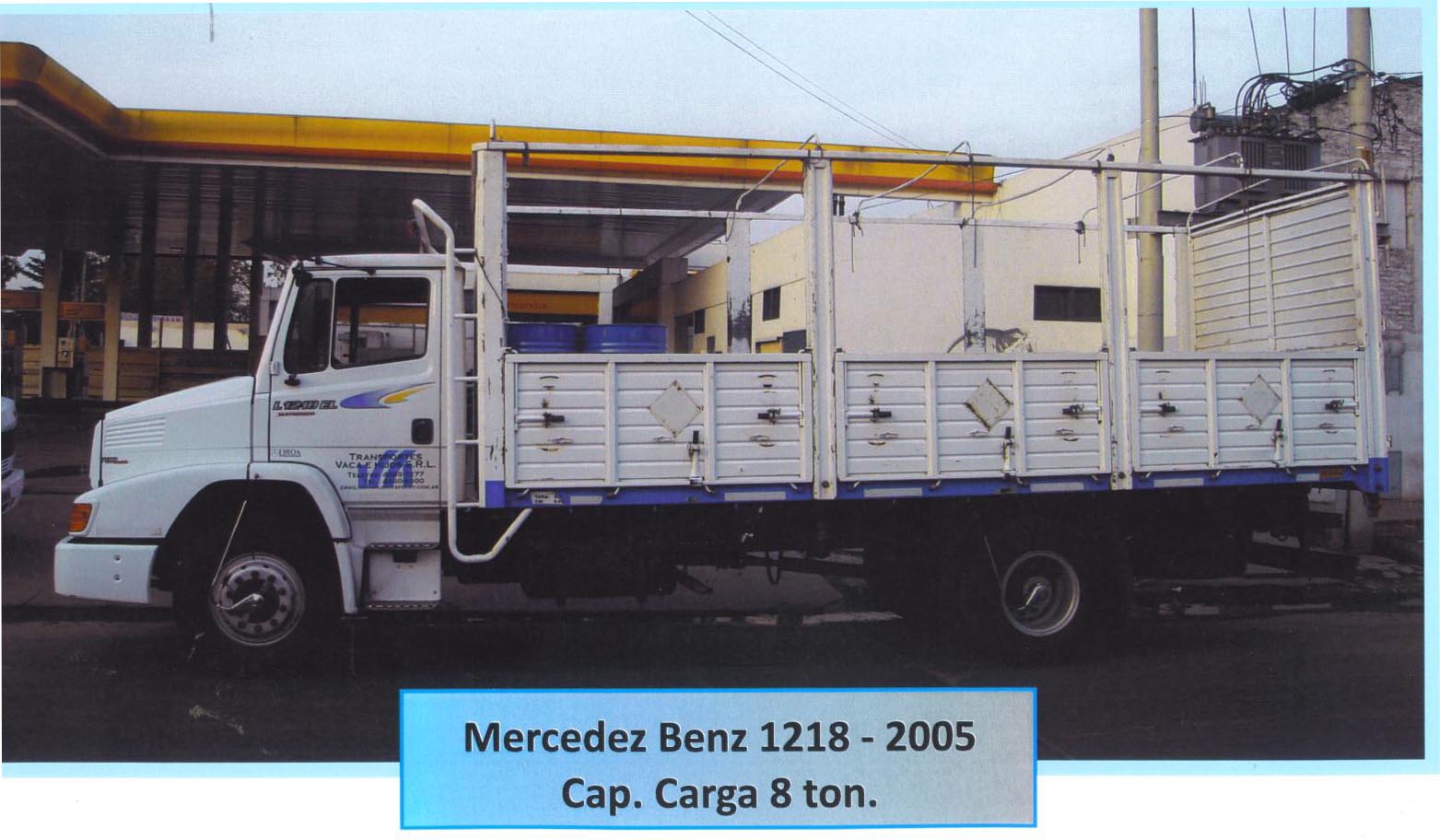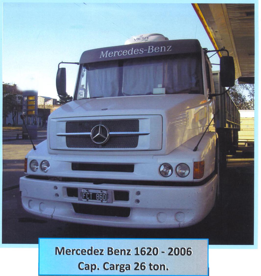 - Mercedez Benz 712 CRO 880 Año 1999 Capacidad 28 m3 - Mercedez Benz 1218 COA 537 Año 1999 Capacidad 35 m3 - Mercedez Benz 1215 DGJ 996 Año 2000 Capacidad 40 m3 - Mercedez Benz 1215 DGJ 997 Año 200 Capacidad 40 m3 - Mercedes Benz 1218 Año 2005 - baranda volcable con saider - Mercedes Benz 710 Año 2006 - baranda volcable con lona - Mercedes Benz 1418 Año 2008 - todo puertas - Mercedes Benz 1318 Año 2009 - baranda volcable - Mercedes Benz 1318 Año 2010 - baranda volcable - Mercedes Benz 1215 Año 2000 - todo puertas - Mercedes Benz 1634 Año 2008 - semi - baranda volcable - Mercedes Benz 1634 Año 2010 - semi - baranda volcable - Mercedes Benz 1620 Año 2006 - semi - baranda volcable
